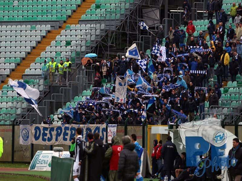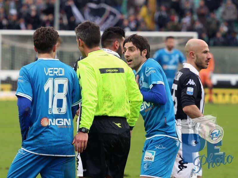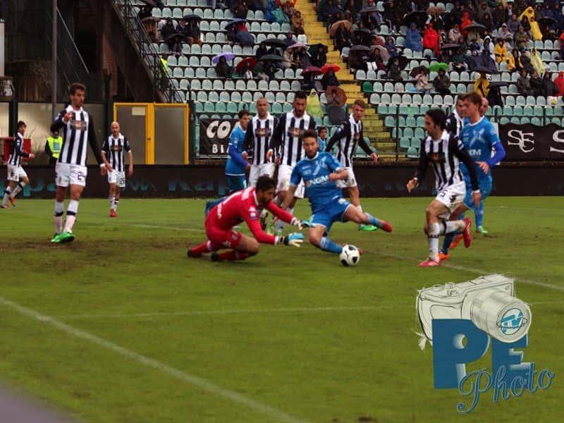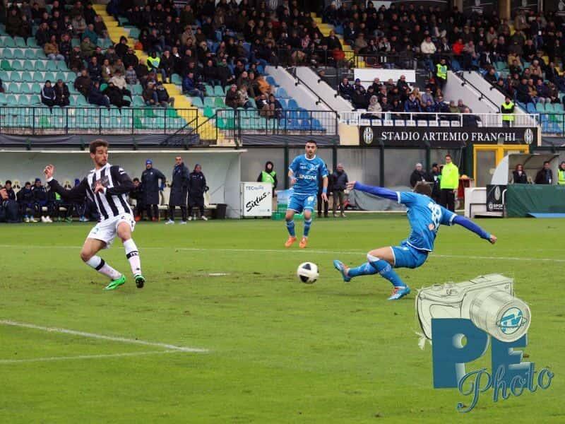 L’Empoli deve accontentarsi di un punto nella trasferta in terra senese, potendo fra l’altro concedersi di recriminare per una gestione arbitrale del match quantomeno discutibile. Gara a senso unico, con gli azzurri a macinare gioco e occasioni: nel primo tempo sfiorano la traversa le conclusioni di Mario Rui su punizione e Croce, senza dimenticare le inizitive del tridente Maccarone-Verdi-Tavano che tengono in costante apprensione la retroguardia bianconera. Il Siena dal canto suo si affaccia dalle parti di Bassi principalmente con Rosina e Fabbrini, ma senza grande convinzione, e comunque sia il portiere azzurro che i due centrali Rugani e Tonelli si fanno trovare sempre attenti e puntuali nelle chiusure. Al 37′ viene ammonito Eramo per fallo sull’ex-Fabbrini, ma a condizionare il resto della gara sarà il secondo giallo comminatogli nemmeno dieci minuti più tardi (in pieno recupero) per un innocuo contrasto con Belmonte: il centrocampista azzurro viene espulso e lascia i propri compagni in inferiorità numerica per tutta la ripresa.