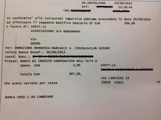 Bel gesto del Club Azzurro Spicchio e del consiglio del Circolo Ricreativo di Spicchio, che hanno donato nei giorni scorsi una quota a favore dell’AISLA Onlus e dell’Associazione SLA Borgonovo in memoria del loro ex Presidente Victor Hugo Marcacci, tifosissimo dell’Empoli venuto a mancare lo scorso mese di agosto. Un gesto che merita il plauso di tutti gli sportivi.