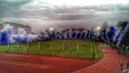 Durante la partita Politehnica Timisoara-FC Arges, campionato di quarta divisione rumena (paragonabile alla Serie D italiana, ndr), i tifosi del Timisoara si sono resi artefici di una coreografia con i fumogeni davvero particolare. La gara andata in scena sabato 6 dicembre 2014 ha coinvolto numerosi tifosi locali che hanno voluto festeggiare così il 93° compleanno del club calcistico rumeno.