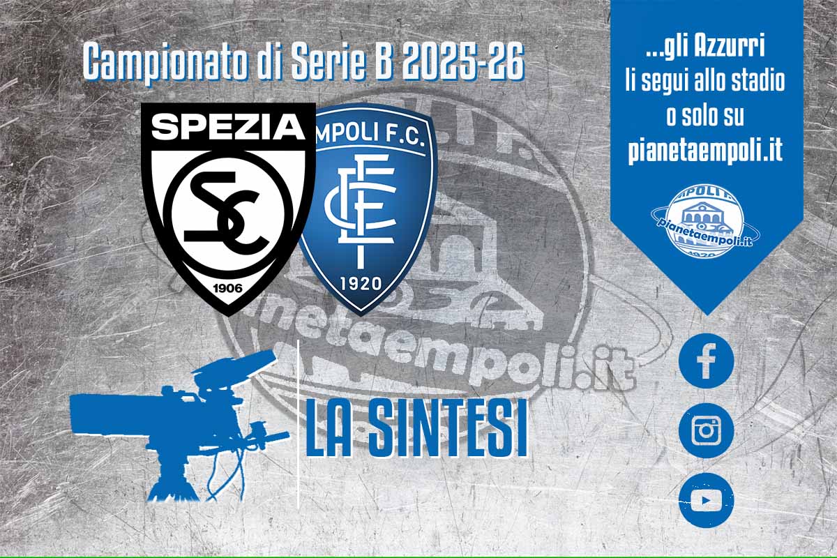 Home Empoli TV | Sintesi gara Spezia-Empoli 1-1 TV | Sintesi gara Spezia-Empoli 1-1 Di Redazione PianetaEmpoli - 18 Marzo 2026 2 ARTICOLI CORRELATIALTRO DALL'AUTORE Empoli EFC | Oggi la ripresa. Da Spezia un pareggio all’ultimo respiro che salva dal “dramma” Empoli Info biglietti per Italia-Macedonia del Nord Under 21 al Castellani Empoli TV | Mister Caserta nel post gara a Spezia 2 Commenti Basta Nasti, Ilie e Ceesay…. Popov in mezz’ora ha fatto vedere piΓΉ cose che Nasti in 5 partite…. ma che deve giocare per forza? lui Ilie e Ceesay sono irritanti, i primi due possono andare anche in panchina e l’ultimo al max puΓ² essere un cambio…. Risposta Prima volta per me in trasferta quest’anno; mi sono divertito, sia in pullman che in curva coi Desperados. Empoli unico amore π Risposta LASCIA UN COMMENTO Cancella la risposta Please enter your comment! Please enter your name here You have entered an incorrect email address! Please enter your email address here Save my name, email, and website in this browser for the next time I comment. Δ Le ultime fotogallery Empoli Galleria Serie B 2025/26 | Spezia – Empoli Massimiliano Ciabattini - 17 Marzo 2026 1 Galleria Serie B 2025/26 | Empoli – Mantova 14 Marzo 2026 Galleria Serie B 2025/26 | Catanzaro β Empoli 9 Marzo 2026 Galleria Serie B 2025/26 | Empoli β Cesena 28 Febbraio 2026 Galleria Serie B 2025/26 | Empoli β Reggiana 15 Febbraio 2026