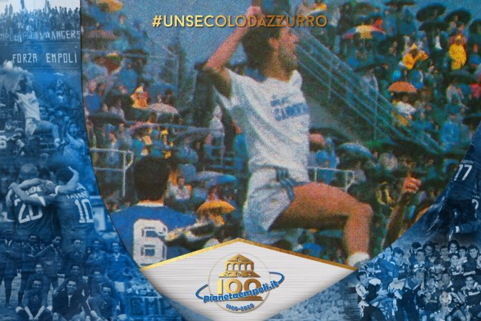 A 90 minuti dal termine, l’Empoli a Como deve solo vincere e sperare. Quella speranza che non fa difetto ai circa mille tifosi azzurri che seguono la squadra in Lombardia nel piovoso epilogo della stagione. A metà del secondo tempo, l’Empoli di fatto è in B. Fiorentina e Atalanta sono ferme sullo 0-0. Al Comunale di Torino, la Juventus sta impattando 2-2 nel rocambolesco match interno con il Brescia che coincide con l’addio al calcio del fuoriclasse francese Michel Platini. Poi, al 66° minuto, ecco l’episodio che decide la stagione, invertendo all’improvviso il corso della storia azzurra. Dopo il palo colpito da Mattei nel primo tempo e due gol annullati per fuorigioco a Borgonovo, il centrocampista lariano Notaristefano, nel tentativo di disimpegnare all’indietro sul proprio portiere Paradisi, serve involontariamente in area Marco Osio. Il 21enne ex granata che, alcuni mesi prima, ha trafitto Zenga alla prima di campionato con l’Inter, segnando il primo gol in serie A dell’Empoli, si consegna direttamente alla storia siglando la rete che fa esplodere il migliaio di tifosi azzuri giunti al Sinigaglia in quell’indimenticabile pomeriggio di metà maggio.