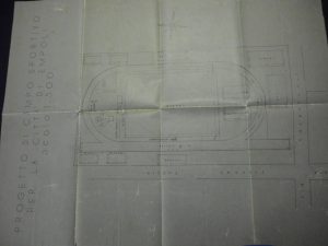 Nei documenti dell’Archivio Storico del Comune di Empoli (che è stata la nostra fonte quasi esclusiva dalla quale abbiamo potuto attingere le informazioni che ci hanno consentito di scrivere le storie dei “Campi dell’Empoli”) abbiamo trovato il disegno di quello che doveva essere il progetto del nuovo Stadio, del quale alleghiamo foto