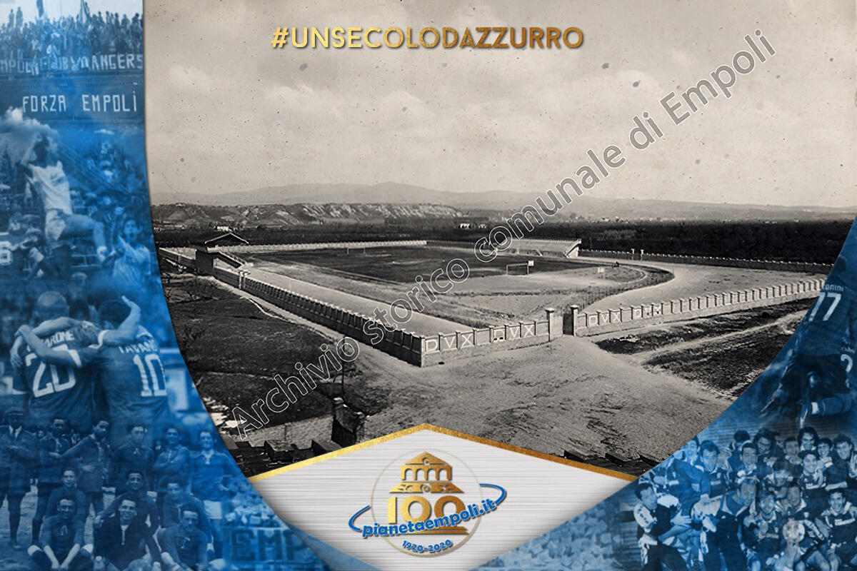 A proposito del Campionato 1936/37 c’è da fare una premessa.. L’ Empoli FBC delle origini aveva cambiato denominazione già nella Stagione 1931/32: da Empoli Foot Ball Club era diventata ASF Empoli, ove ASF sta per Associazione Sportiva Fascista. Il Campionato 1935/36 vide purtroppo ritirarsi la squadra già dopo la 9° giornata, nel dicembre 1935. La causa ufficiale fu la partenza di molti giocatori per la guerra di Abissinia ma in realtà c’erano motivi finanziari alla base di tale decisione. Gli empolesi rischiarono seriamente di rimanere senza la loro squadra cittadina ma non si persero d’animo e, grazie anche ai buoni uffici politici di cui il Comune godeva nelle alte sfere del Governo e della FIGC, la squadra potette iscriversi al Campionato di Prima Divisione Toscana, ma cambiando la sua denominazione sociale in Dopolavoro Interaziendale Empolese che ereditò i titoli sportivi della ASF Empoli. Quello del 1936/37 fu un Campionato che gli azzurri vinsero cosa che consentì alla squadra di poter disputare di nuovo, nella Stagione 1937/38, il Campionato di Serie C. Fu quindi nel Campionato 1936/37 che la squadra del Dopolavoro Empolese giocò con ogni probabilità la sua prima gara al nuovo Stadio: fu il il 22 novembre 1936: Dopolavoro Empolese – Siena, 3 – 0 per gli azzurri. Pensiamo che il Dopolavoro Empolese abbia disputato tutto il Campionato 1936/37 in uno Stadio praticamente in costruzione, nel quale c’era ovviamente il terreno di gioco ma poco altro.