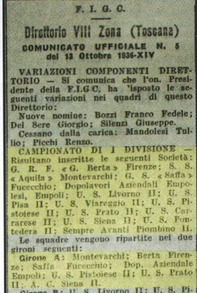 Come ricorda Carlo Fontanelli nel libro Brividi d’azzurro, nel 1936-37 di queste due squadre non si trova piΓΉ traccia. Nel comunicato ufficiale n. 5 del 13 ottobre 1936, il Direttorio VIII Zona (Toscana), per indicare l’Empoli si riferisce a Dopolavori Aziendali Empolesi [6]: proprio cosΓ¬, al plurale, facendo presumere che ci sia stata una fusione tra le due piccole realtΓ sopra citate per ridare un futuro calcistico di una certa importanza alla cittΓ di Empoli.