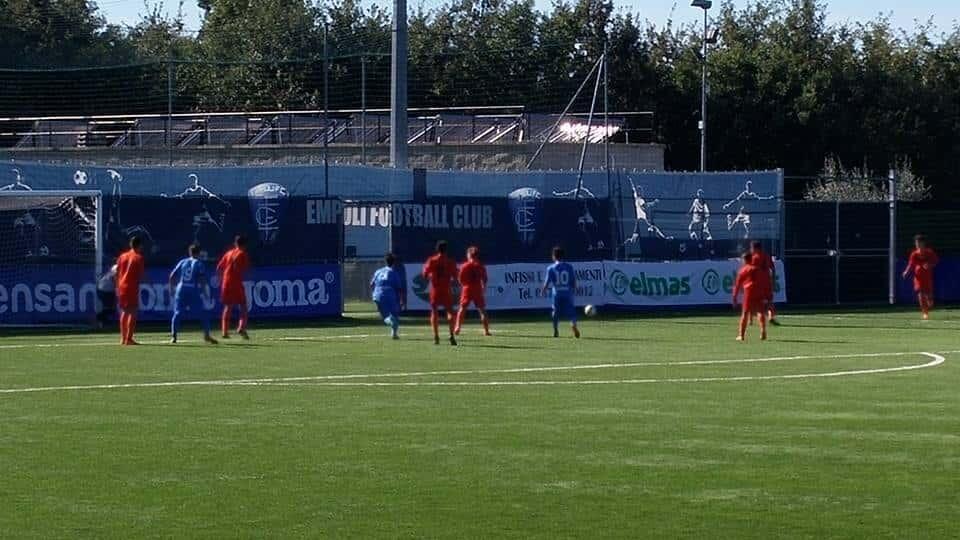 L’Empoli di mister Buscè vince e convince. Gli azzurrini Under 15 liquidano la pratica Pistoiese con un 5-0 che non accetta repliche e mantengono così il primato in classifica. La gara è stata dominata sul piano del gioco fin dal primo minuto, alla fine gli azzurri hanno fatto valere il maggior tasso tecnico nei confronti degli avversari. Volenterosi gli arancioni, soprattutto nel primo tempo, quando con il pressing hanno cercato di limitare le offensive empolesi. La prima frazione si è infatti conclusa solo 1-0, decisa dal rigore di Contini, ed è stata caratterizzata dalle numerose occasioni sprecate dagli avanti azzurri. Nel secondo tempo la musica è cambiata, vuoi perché l’Empoli è sceso in campo con ancora più convinzione, vuoi perché la Pistoiese è calata visibilmente alla distanza.