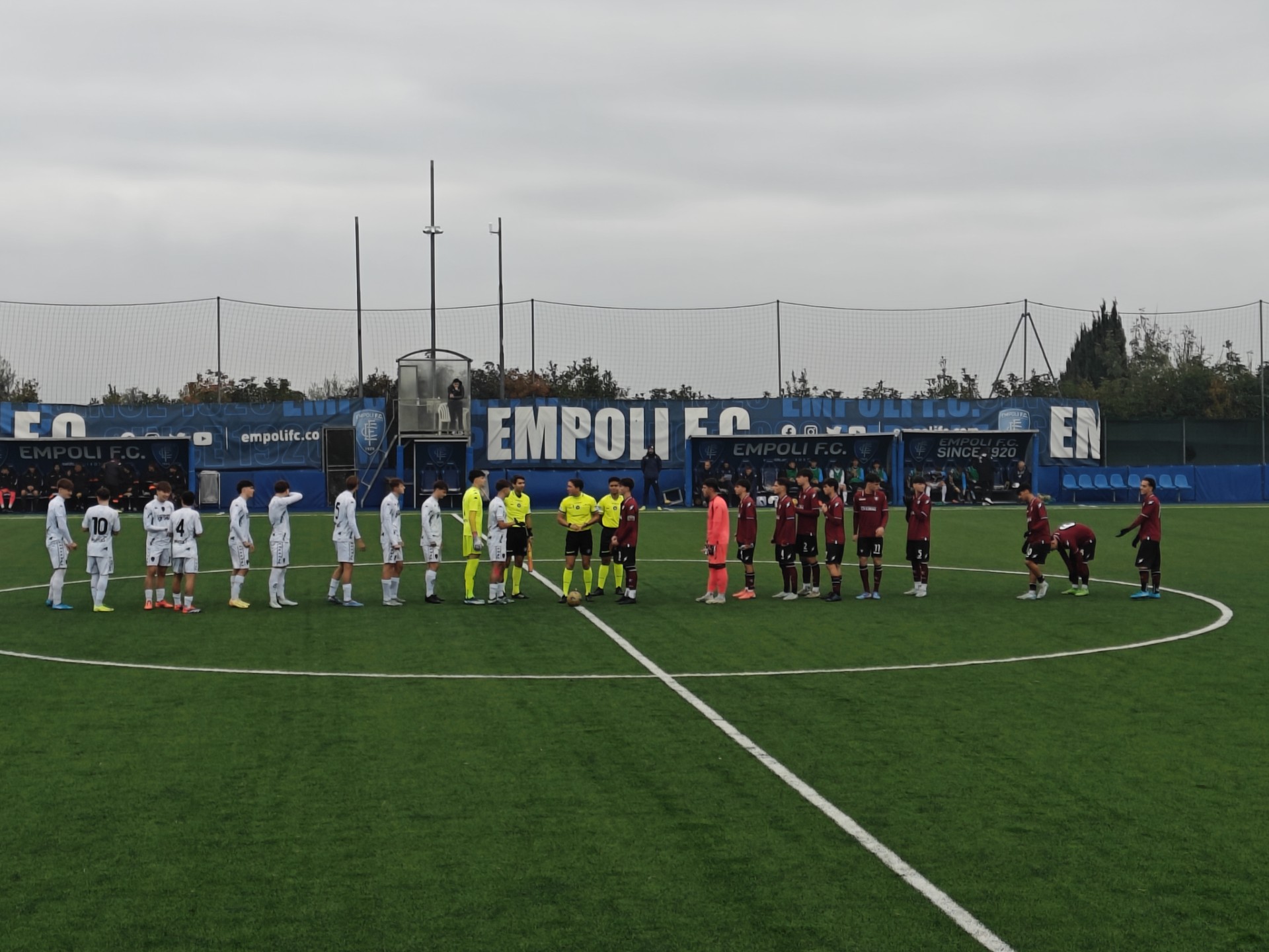 - Buona prova da parte dei ragazzi di Filippeschi che trionfano in casa per 4-0 sulla Salernitana. L’Empoli parte forte sin dal primo minuto, portando un pressing alto e di squadra che non lascia ragionare la difesa avversaria. Tante le occasioni clamorose non sfruttate, tra cui anche una traversa colpita da Busiello. La difesa della Salernitana fatica nell’andare a prendere alta i giocatori azzurri quando sono in possesso ed inevitabilmente lascia spazi dietro che Tavanti e Guglielmino sono stati molto bravi a sfruttare coi loro inserimenti. Ottimo lavoro di sponda anche da parte di Blini e Campaniello che arrivano diverse volte vicini al gol ma senza fortuna. A sbloccarla al 40′ ci pensa il numero 10 Busiello che sembrava aver perso il tempo per servire un compagno in ripartenza ma è bravo ad approfittare di una distrazione del difensore, a recuperare palla e ad infliarla in rete. Nel secondo tempo la Salernitana va in confusione dopo un primo tempo dove aveva sofferto in difesa ma era ripartita bene. Al 9′ minuto della ripresa ancora Busiello a sfruttare un tocco delizioso a scavalcare la difesa di Baralla con cui sigla il gol del momentaneo 2-0. Al 20′ ancora un errore della difesa granata in fase d’impostazione, sul pallone vagante arriva prima Biondini che mette a sedere un difensore e incrocia col destro per il 3-0. Nei minuti di recupero c’è gioia anche per il subentrato Pellegrini che su un cross tagliato di Lo Monaco colpisce col destro al volo e chiude definitivamente l’incontro. Con questa vittoria gli Azzurri confermano la prima posizione con 24 punti e si preparano ad affrontare settimana prossima il Catanzaro.