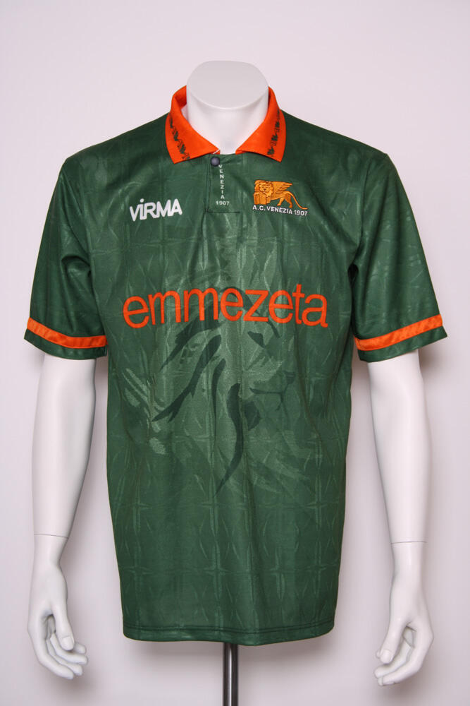 Dire che dal giorno della fusione fra Venezia e Mestre (26 Giugno 1987) sia iniziata una storia tribolata è forse riduttivo. Negli alti e bassi seguiti ai cambi di proprietà, ai fallimenti e alle successive rinascite, si può comunque individuare una costante: la difficoltà di far coesistere le due anime, quella arancionera e quella neroverde, specie parlando di maglie. Nike pare essere riuscita a trovare la formula (applicando il semplice buonsenso) per mettere tutti d’accordo. Ne abbiamo parlato con il più importante collezionista della squadra veneta: Marco Bevilacqua.
